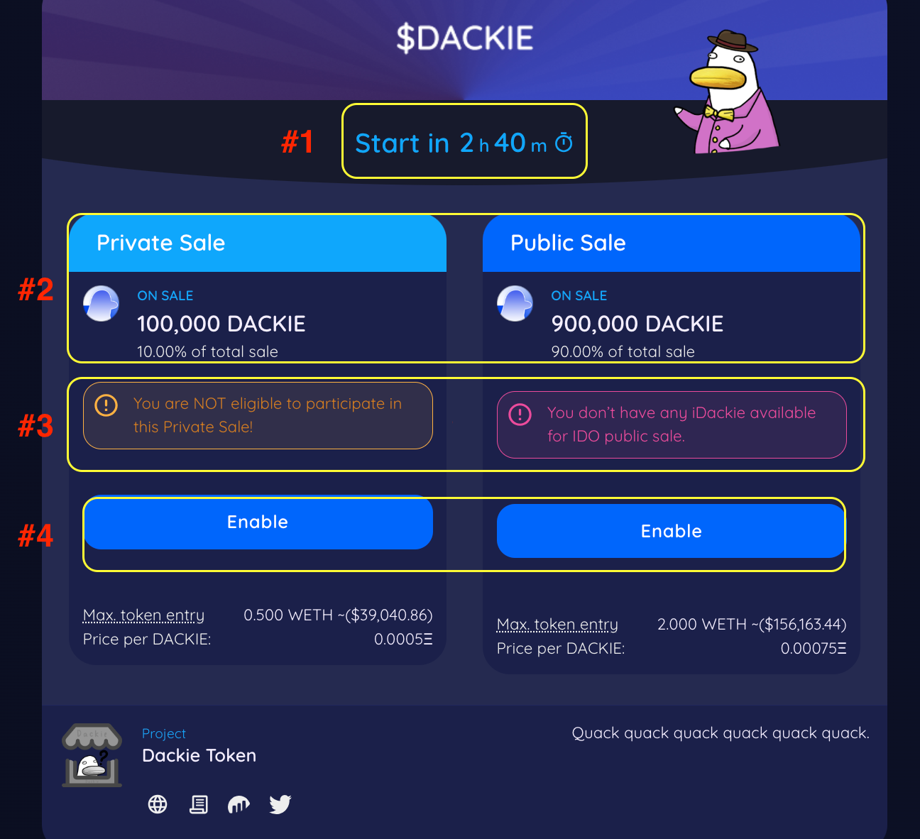 Public sales: Open to everyone (although some public sales may require you to stake a certain amount of DACKIE, but we'll cover that later).